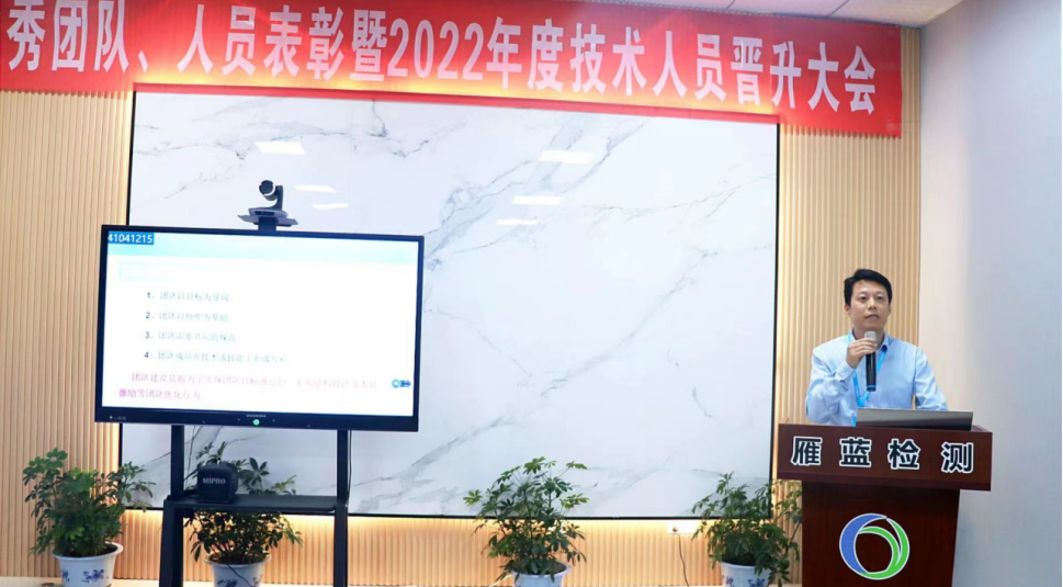 2022年5月13日,雁藍(lán)檢測在江寧本部召開2021年度表彰暨2022年度職務(wù)晉升大會(huì)。公司總經(jīng)理張布偉、副總經(jīng)理蔡同鋒,江寧本部和江北分場所相關(guān)人員參加會(huì)議,會(huì)議由副總經(jīng)理周君主持。