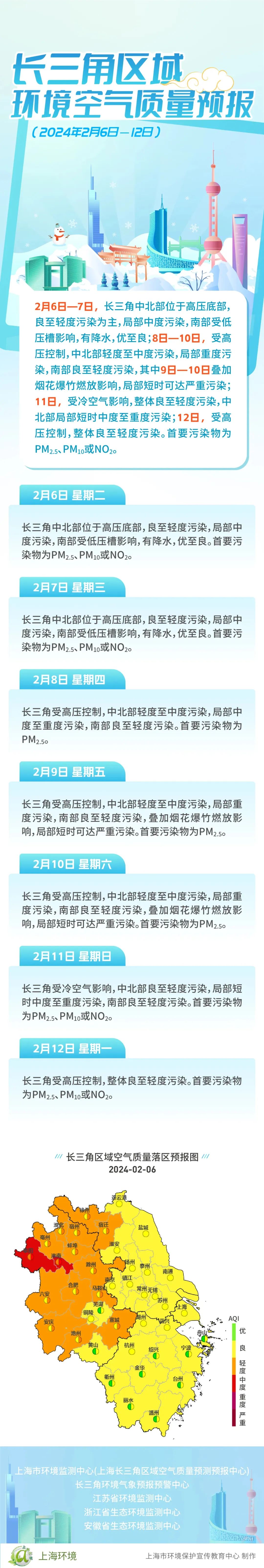 長三角區(qū)域環(huán)境空氣質(zhì)量預(yù)報(2024年2月6日—12日)